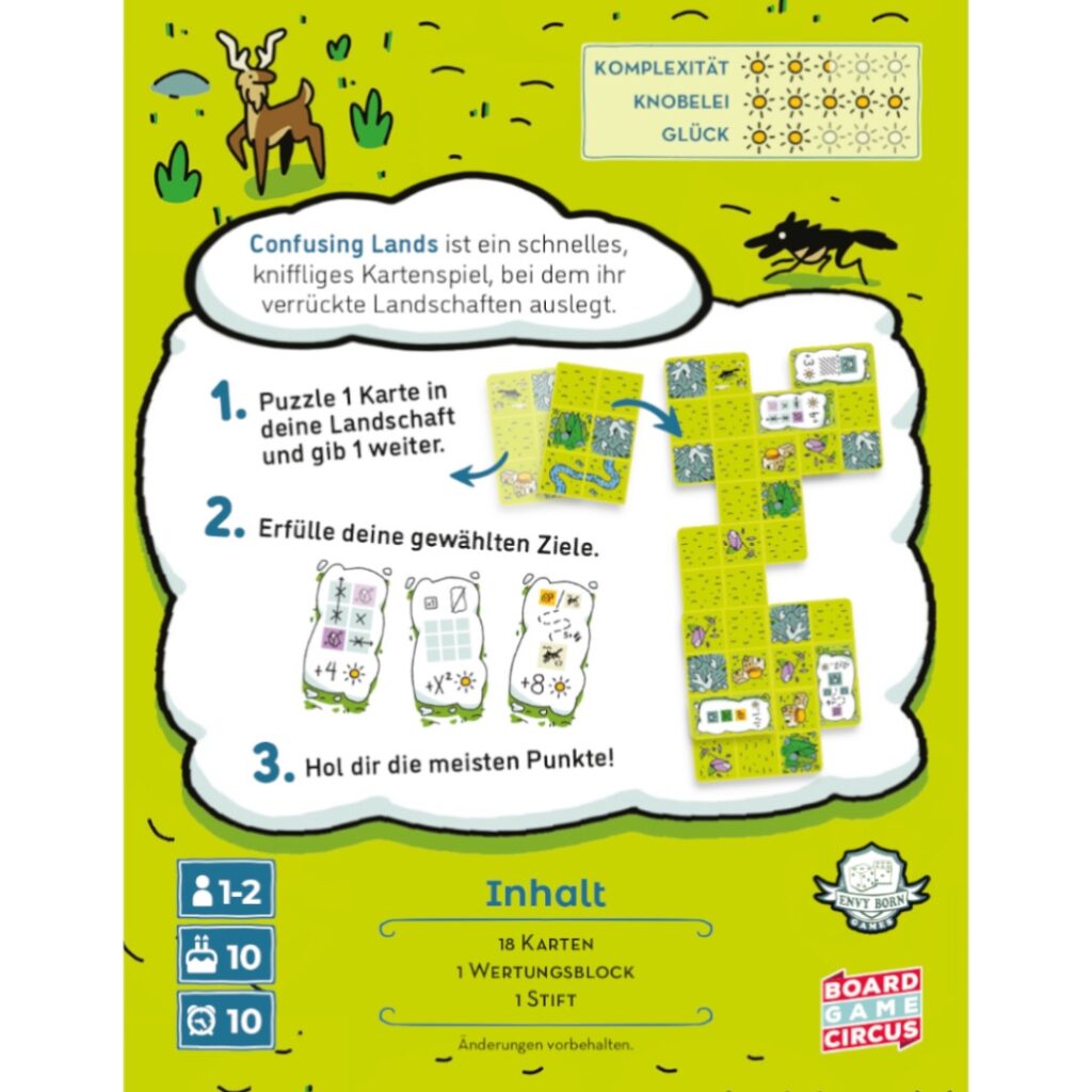 Die Anleitung von „Confusing Lands“ findet ihr im Downloadbereich von Board Game Circus.