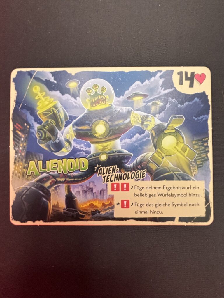 Ein kleiner Einblick meines dortigen Fazits lautete: „Zu Beginn war ich dem Setting gegenüber eher skeptisch. „Gar nicht mein Ding“, dachte ich, zumal es meine erste Begegnung mit dem King of Tokyo-Universum war. Doch ich wurde positiv überrascht. Auch wenn mich die Grafik nicht sofort angesprochen hat, konnte mich das Spielerlebnis sehr schnell fesseln. Das Rennen rund um den Vulkan hat richtig Spaß gemacht. Natürlich spielt der Würfelmechanismus eine große Rolle. Er kann Glück oder Pech bedeuten. Doch genau das sorgt für durchgehend spannende Spielverläufe. Mit zunehmender Spielzeit steigt die Herausforderung spürbar, da der Boss immer mehr Fähigkeiten hinzuerhält.“