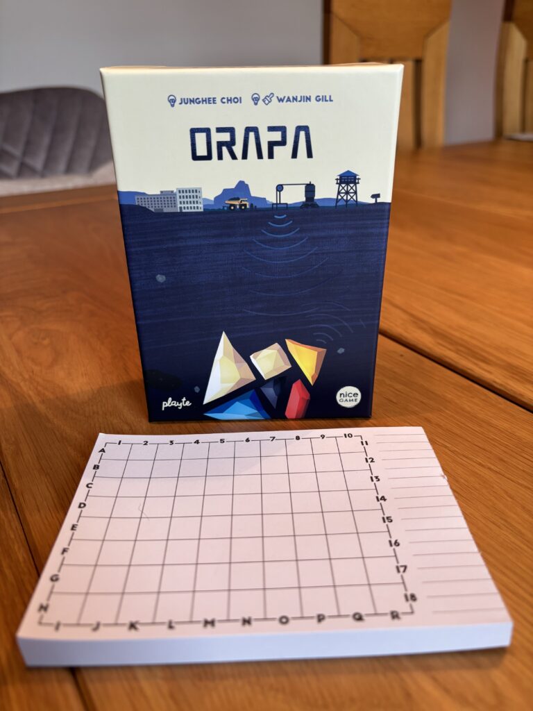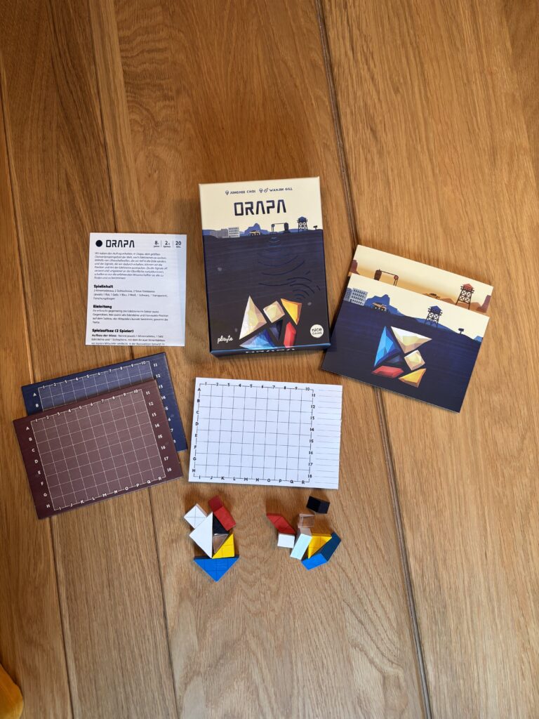 Das Spiel „ORAPA“ ist selbstgekauft. Vielen Dank an Spieletastisch für die rasante Lieferung.