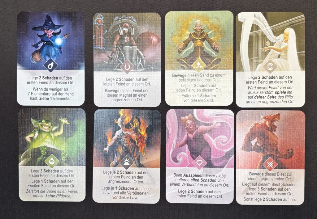 In „Riftforce“ kannst du schnell einsteigen, ohne lange Regeln zu wälzen. Als Fantasy-Fan begeistert mich besonders die Welt der Elementare und Naturgewalten, die dem Spiel eine einzigartige Atmosphäre verleiht.