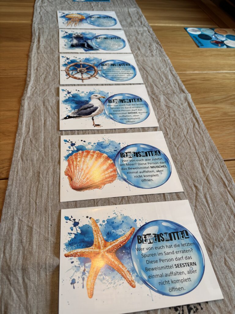 Für mich ist „Spuren im Sand“ ein empfehlenswerter Krimiabend, vor allem dann, wenn man ein Spiel sucht, das gemeinsames Rätseln und Erzählen in den Mittelpunkt stellt. Wir alle freuen uns auf den nächsten Fall! Ich bin mir sicher Lisa ist schon sehr fleißig dran.