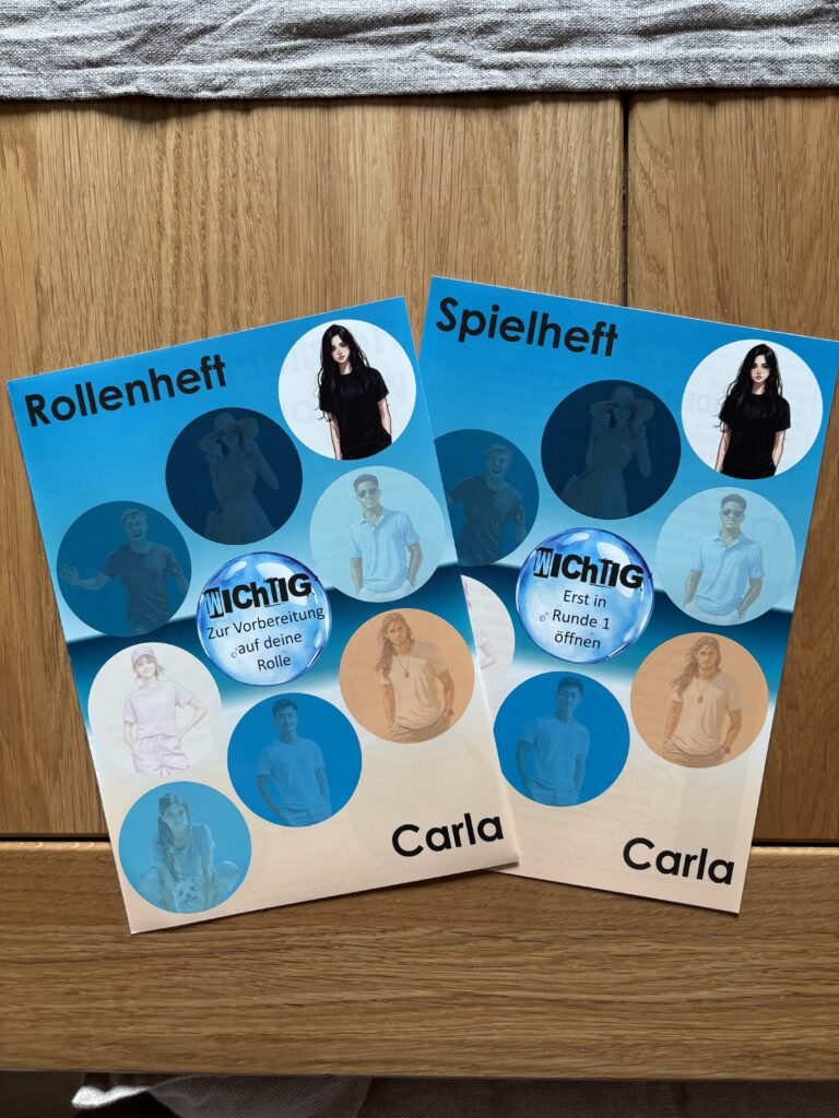 Die schauspielerischen Aspekte machen großen Spaß. Im Rollenheft finden sich hilfreiche Tipps, wie man seine Figur lebendig werden lässt. Die Angaben zur Lieblingskleidung der Charaktere animierten uns dazu, uns ein wenig zu verkleiden, was die Stimmung von Anfang an deutlich hob.